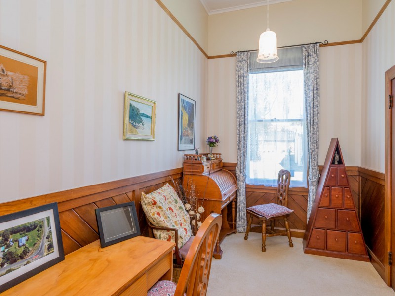 Situated on the edge of town this beautifully restored four bedroom northfacing villa offers a tranquil lifestyle. Sit on the expansive deck and over look 4685m2 of beautifully established gardens with mature trees. The property oozes charm, light and warmth. With 12 foot high ceilings, stained glass windows, timber features throughout and tasteful decor, the homestead certainly exudes the grandeur of yesteryear.